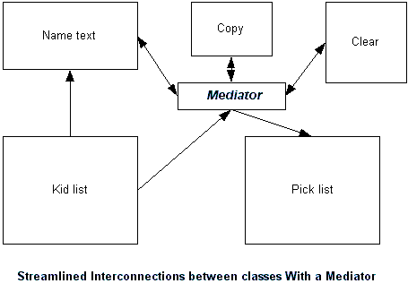 The use of a Mediator streamlines and simplifies these communication interfaces: